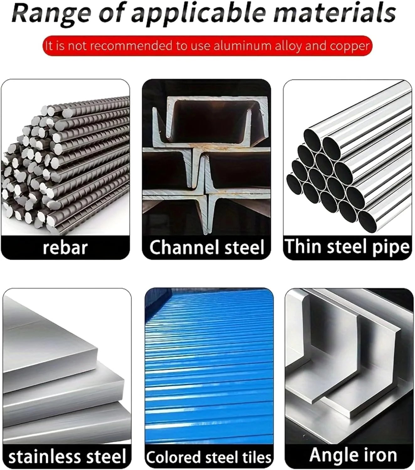 - Application: Steel, iron, stainless steel, stone, concrete