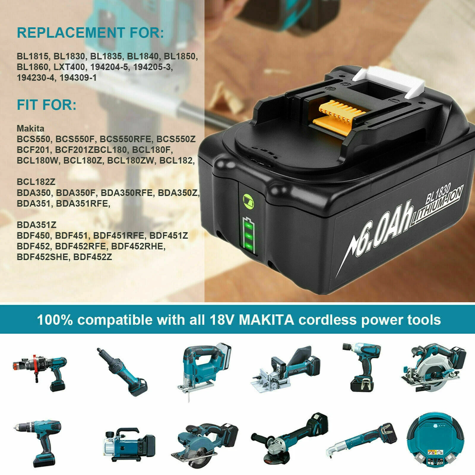 - Compatible with Makita 18V LXT cordless tools