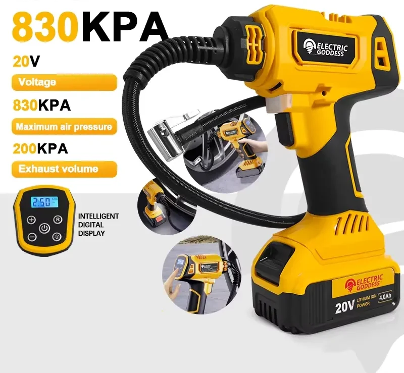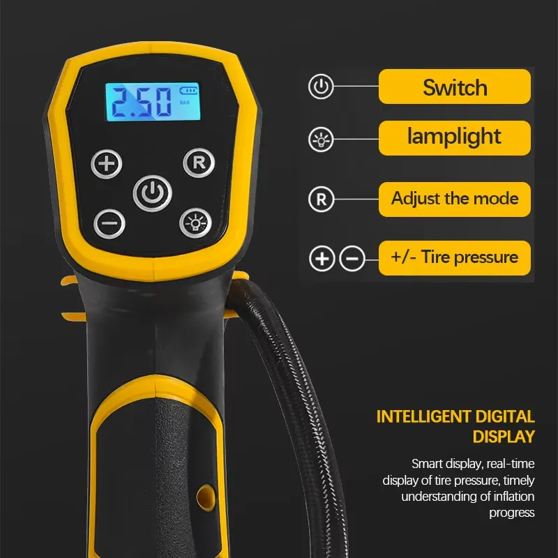 The 830kPa cordless digital tire inflator is a powerful and portable air pump designed for fast and accurate inflation of car tires, motorcycles, bicycles, and other inflatables.