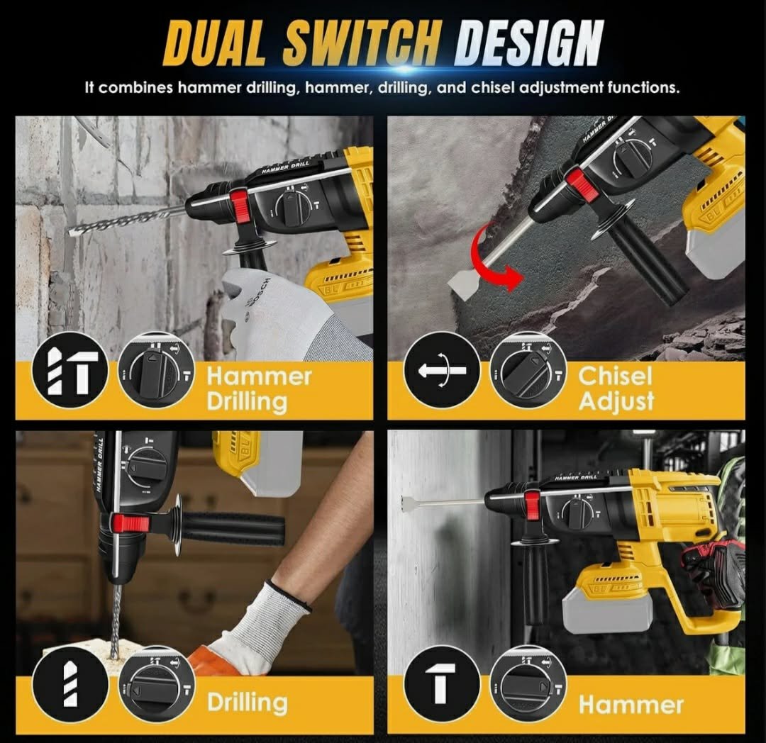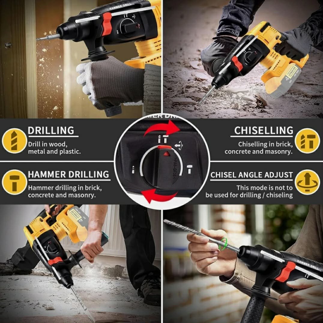 - SDS+ Functions: Drill, Hammer Drill, Chisel, Position Adjustment