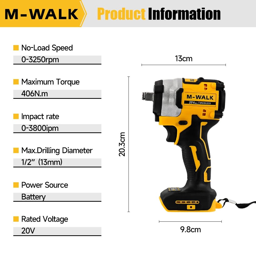 The cordless impact wrench 406N·m is a compact and efficient fastening tool designed for home DIY, automotive maintenance, and general repair tasks.
