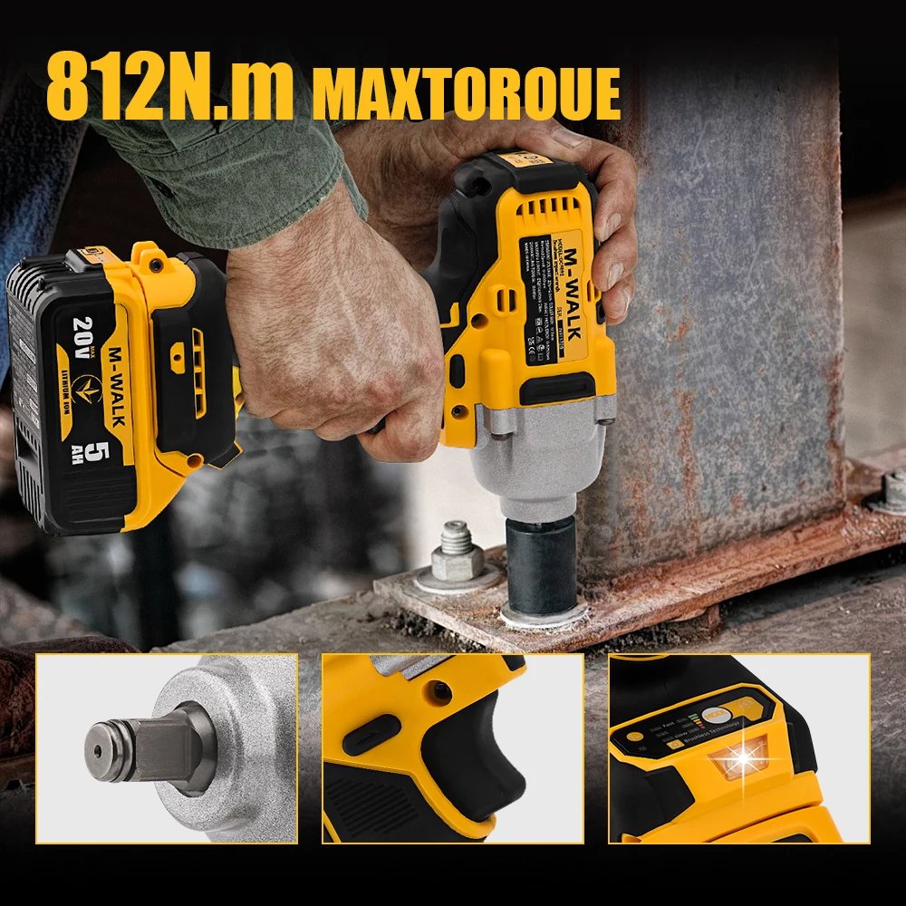 The cordless impact wrench 812N·m is a high-performance fastening and dismantling tool designed for commercial, construction, and heavy-duty maintenance applications.